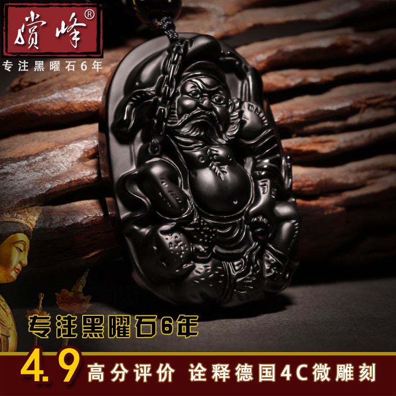 Natural obsidian Zhongkui pendant men's and women's necklace pendant domineering year of the ox birth year jewelry mascot gift