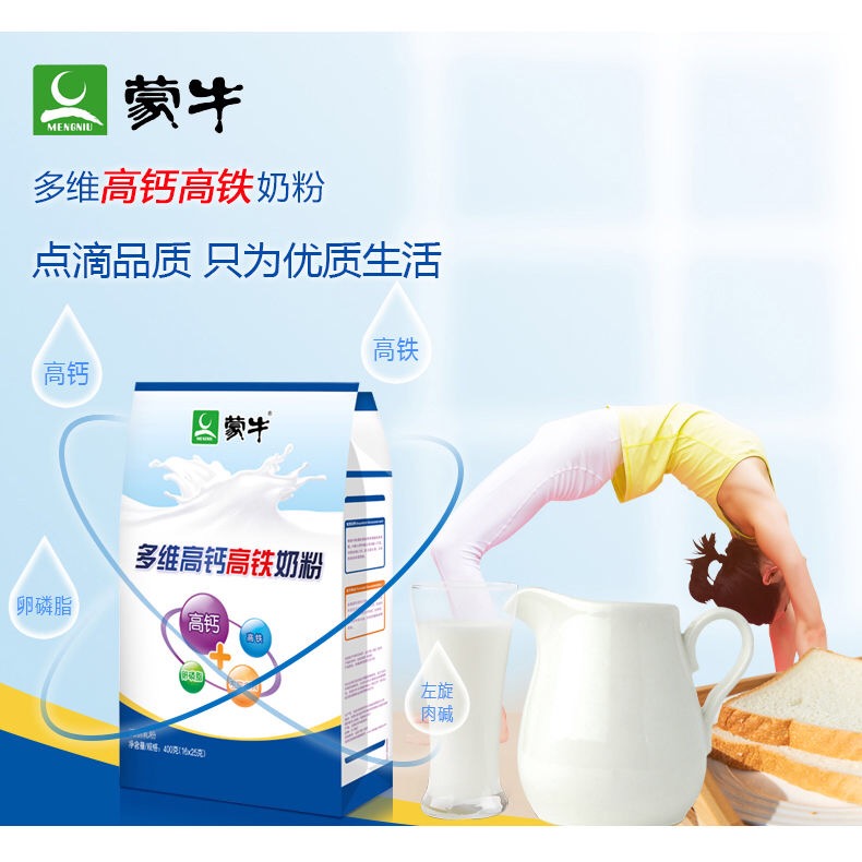 Mengniu adult milk powder multi-dimensional high-calcium high-iron milk powder 400g bagged high-calcium nutrition portable small strips for brewing
