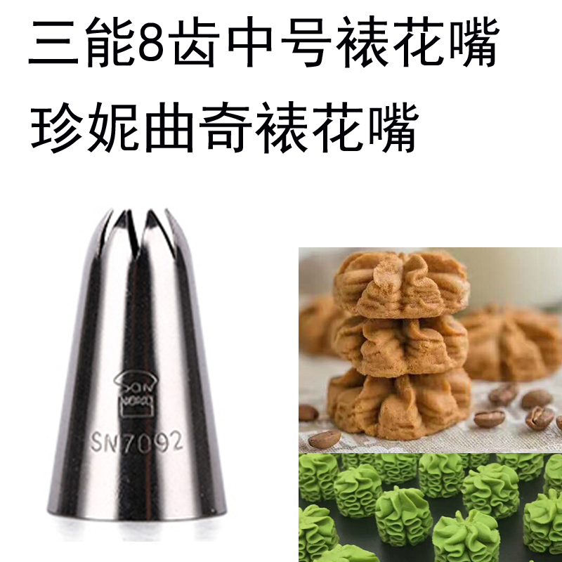 Triple-energy SN7092 mid No. 8 teeth framed flower mouth Jeanette curly mouth cream flower mouth baking tool No rust steel