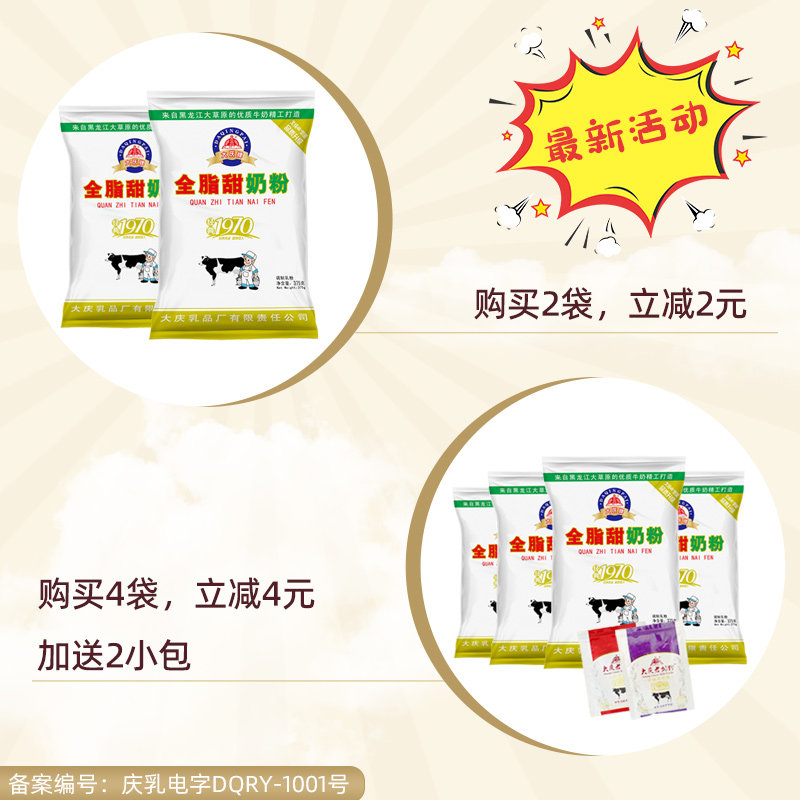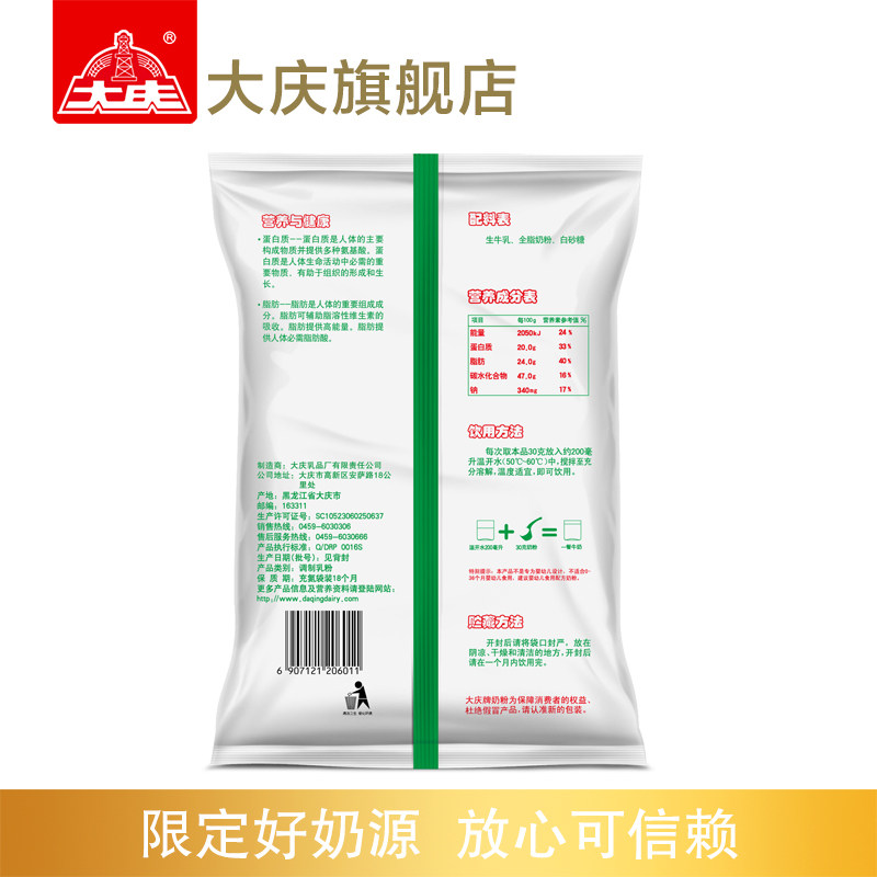 Daqing Whole Fat Sweet Milk Powder Adult Teen Student Milk Powder Old Milk Powder 375g Nutritious Milk Powder Breakfast Package