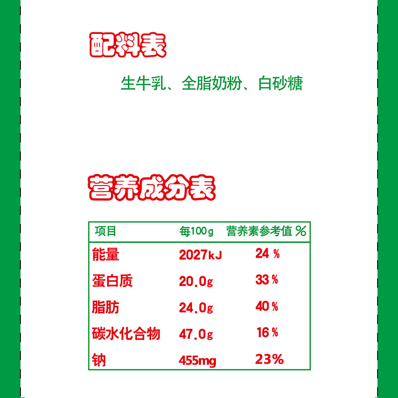 Raw cow's milk full fat milk powder white sugar