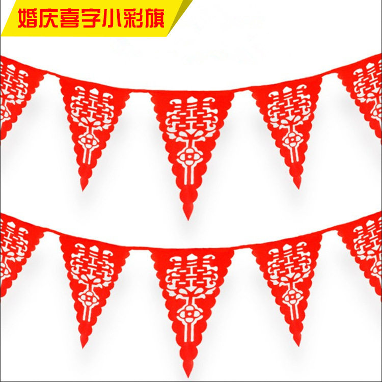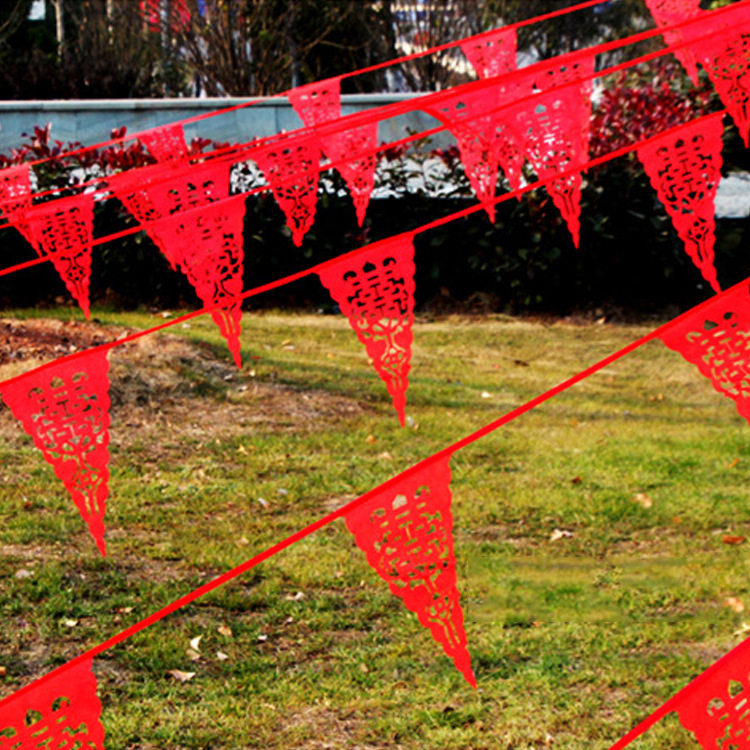 Small Colorful Flag Triangle Red String Flag Unwoven Cloth Hollowed-out Wedding Wedding Celebration Happy Words Little Colorful Flags