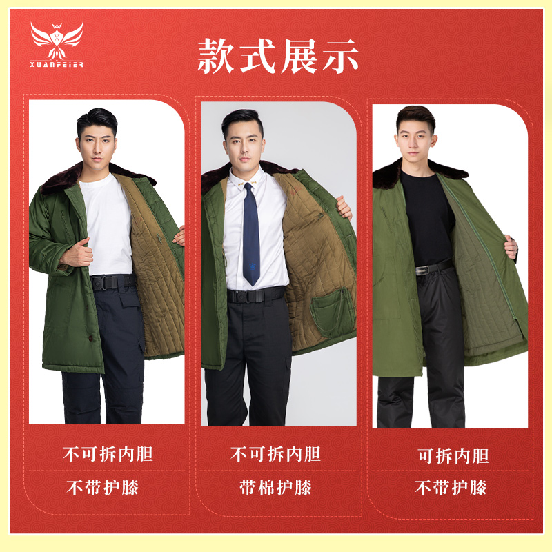 Old-fashioned military cotton coat short men's thick medium and long winter warm green cotton jacket ladies old labor protection cold suit