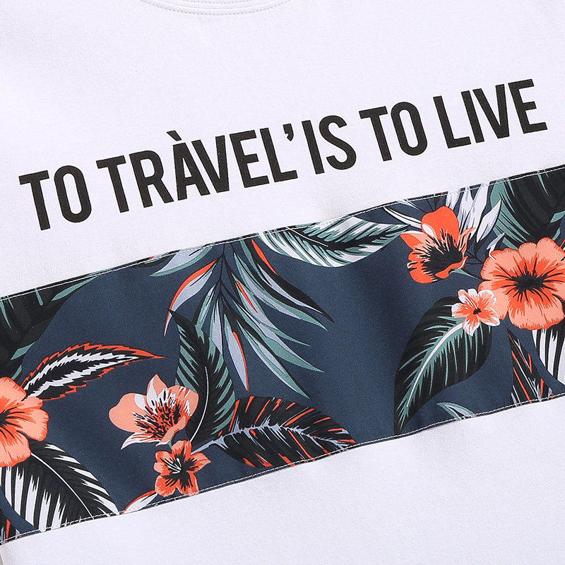 Casual Breathable Short Sleeve Men T-Shirt White Splicing Collision Color Round Collar Male Seaside Resort Pure Cotton Tide Blouse Clothes