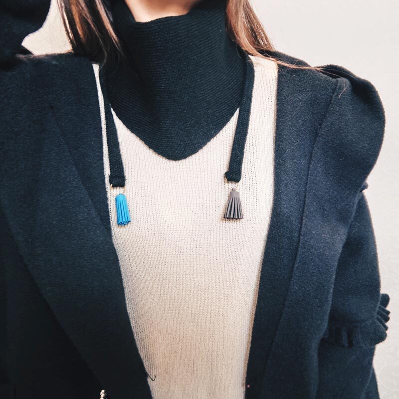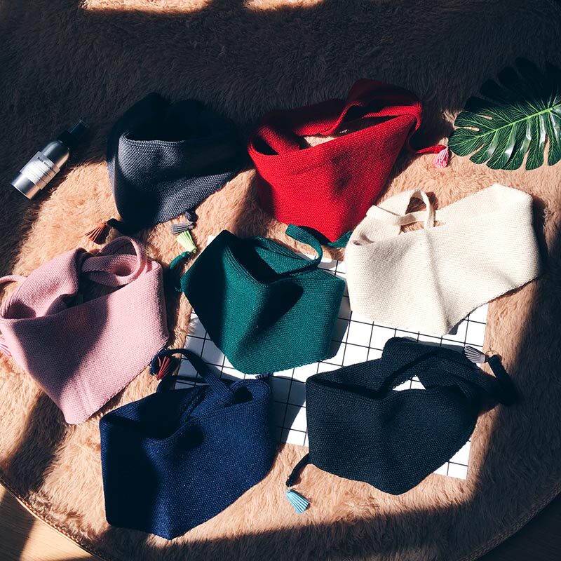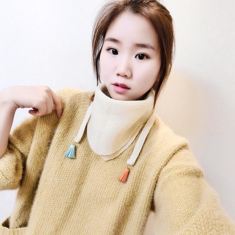 Cute autumn and winter pure color knit tide female flow Su small collar towels Thickened Warm Black Triangle Scarves Scarf neckline decorations
