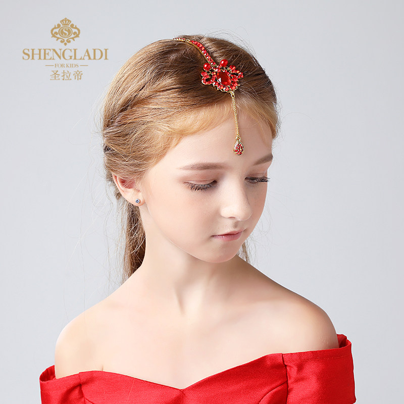 Children's headdresses, girls' princess hair accessories, red small pendants, forehead ornaments