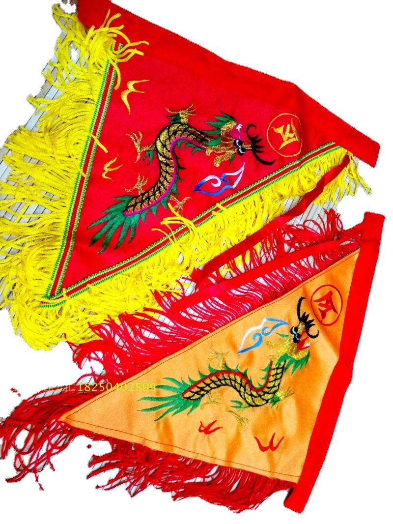 (Yellow and red triangular flag 30 cm double-sided dragon flag) five-color flag into the incense flag, five battalion flag colorful flag, the flag into the incense flag