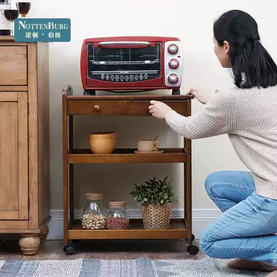 Solid Wood mobile dining car, family cart, trolley delivery cart, kitchen rack, three-layer tea truck, wine truck