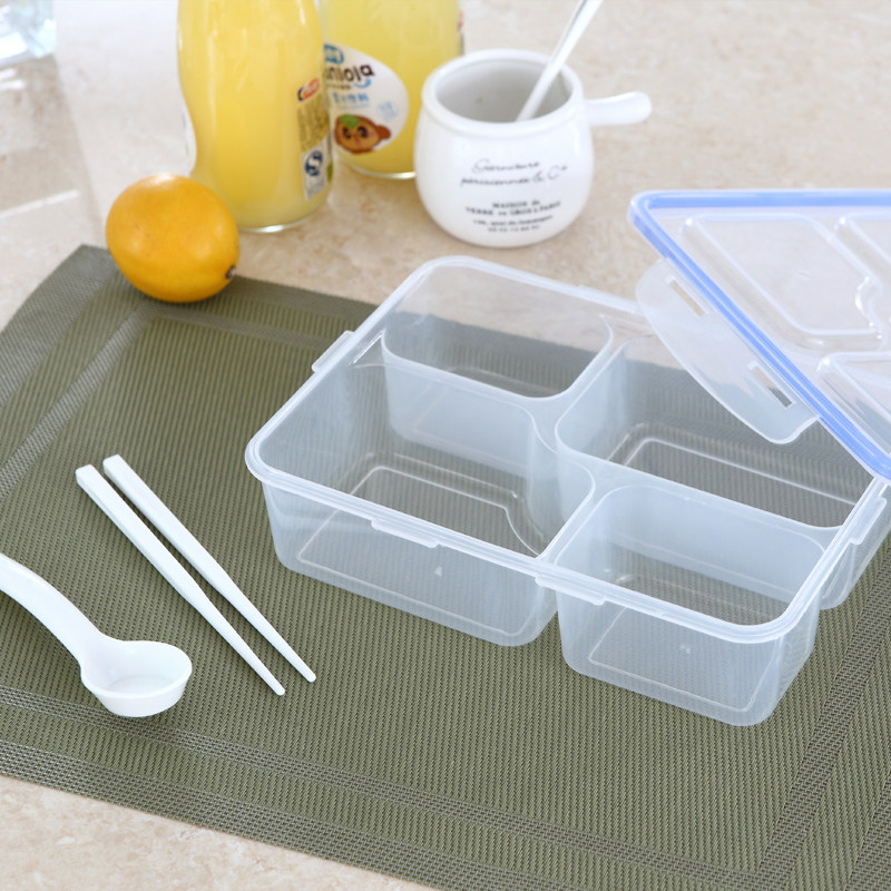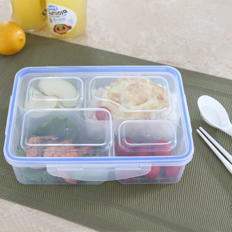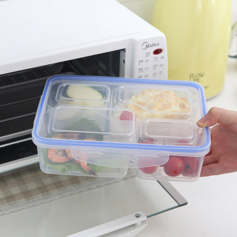 Insulation microwave lunch box four-grid student sealed box lunch box fresh-keeping box divided lunch box sushi box to send spoon chopsticks