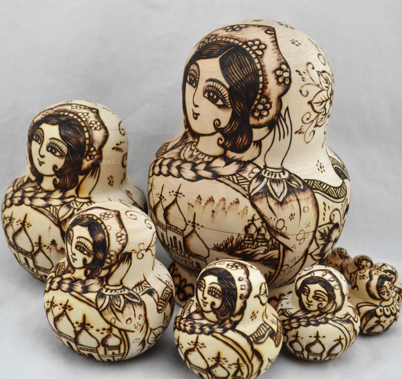 Large Belly 10 Floors Cover Dolls ten Layers Pure Handmade Original Wood Color Transfer Engraving Beautifully Retro High-end New