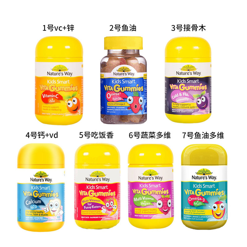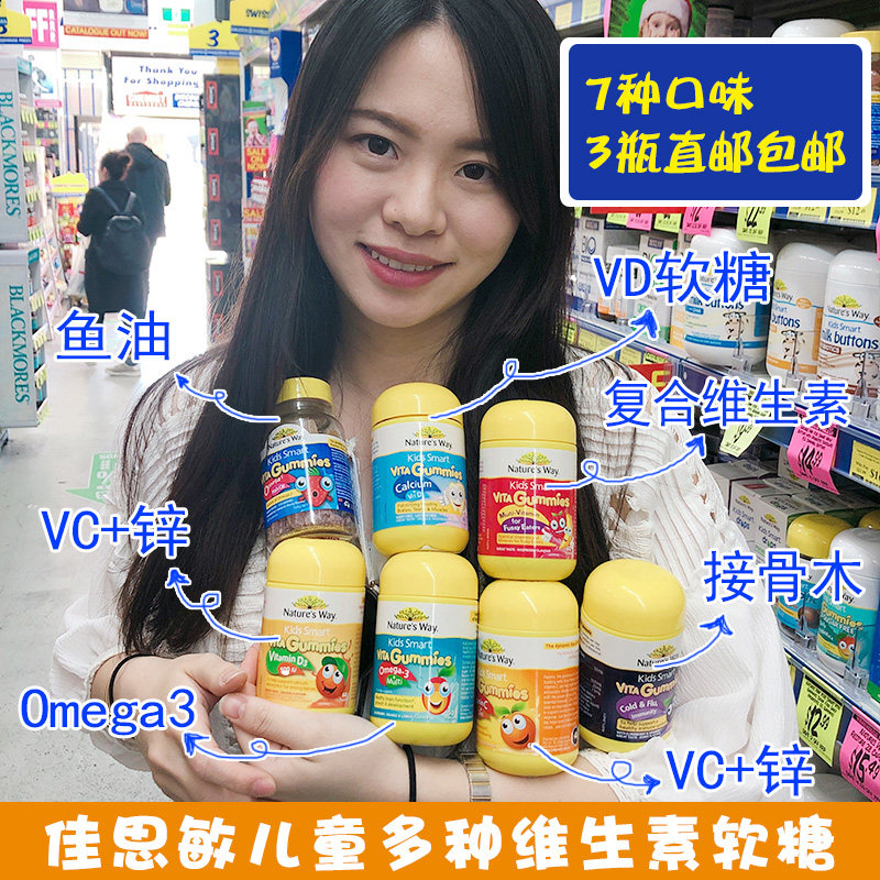 Australia Natures Way Jiasimin Children's Comprehensive Vitamin Fudge vc Zinc Calcium Fish Oil DHA 60 tablets