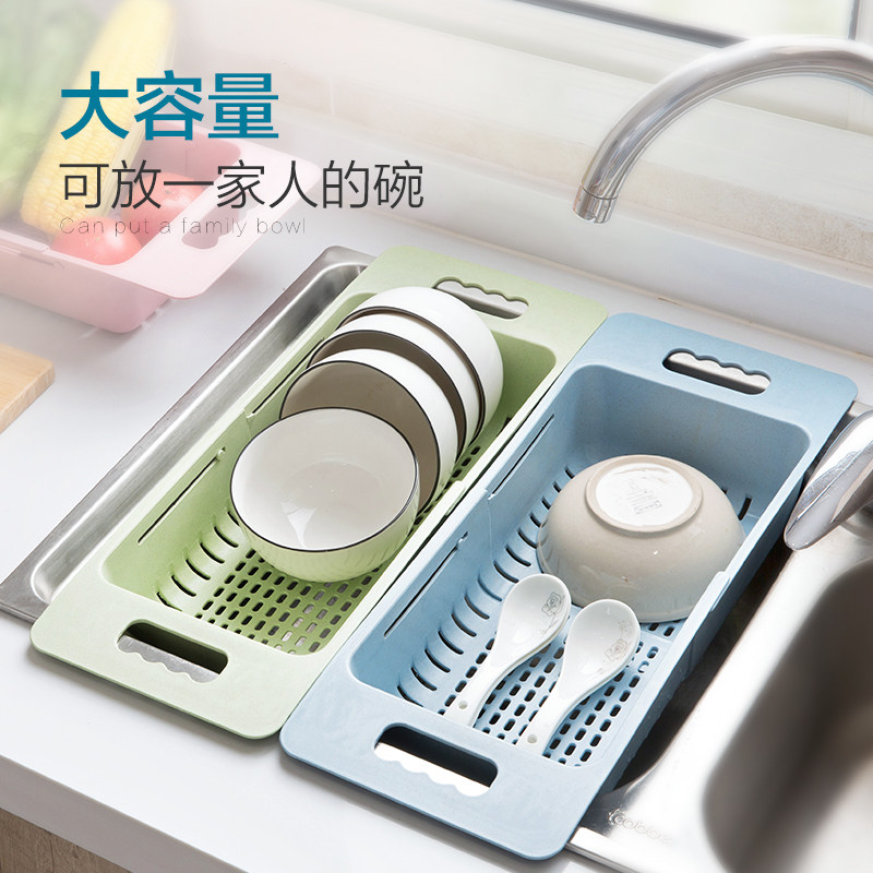Home Home Retractable Sink Drain Rack Kitchen Supplies Plastic Shelve for home Vegetable Dishes Containing shelf-Taobao