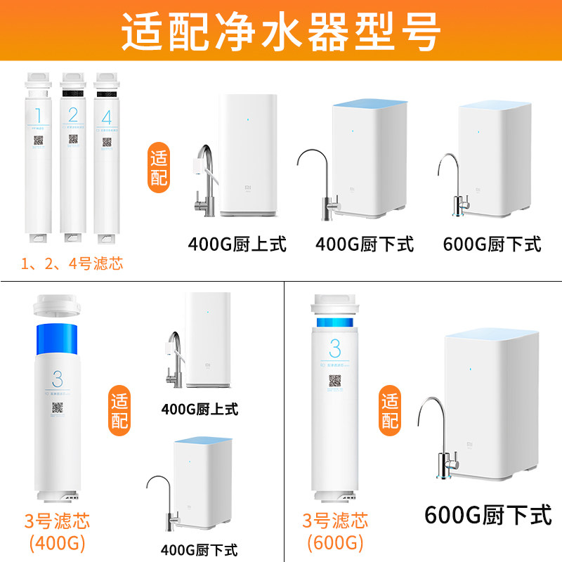 Millet water purifier filter kitchen PP cotton front and rear activated carbon RO reverse osmosis No. 1234 400G600G