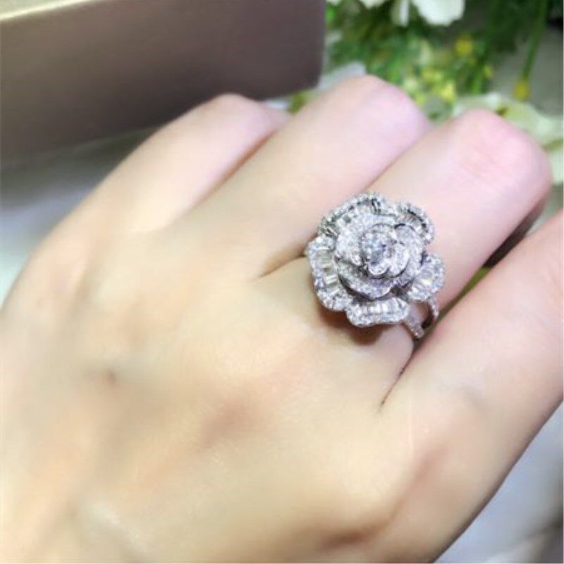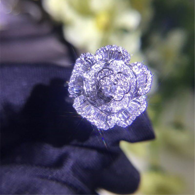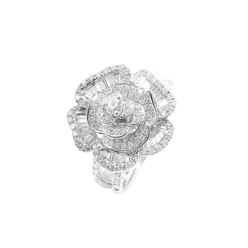 Junhuang Jewelry 18K platinum diamond ring beautiful flower shape ladder square diamond wedding ring, diamond ring, female ring