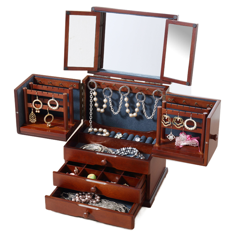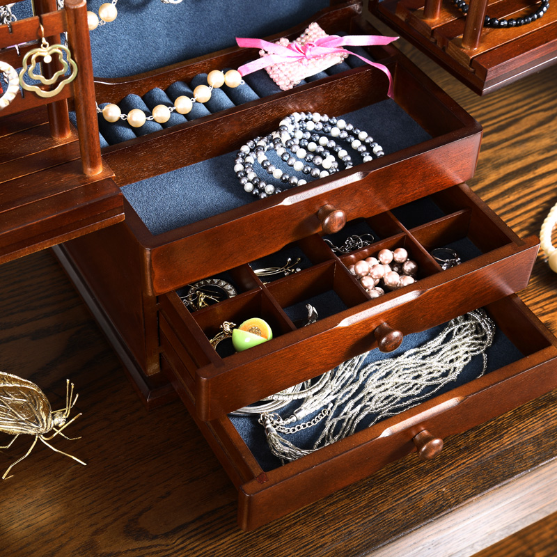 First Decorated Box Wood Large Capacity Korea Princess Eurostyle Hand-decorated Earrings Multilayer Containing Box Wedding Birthday Present