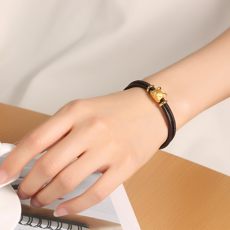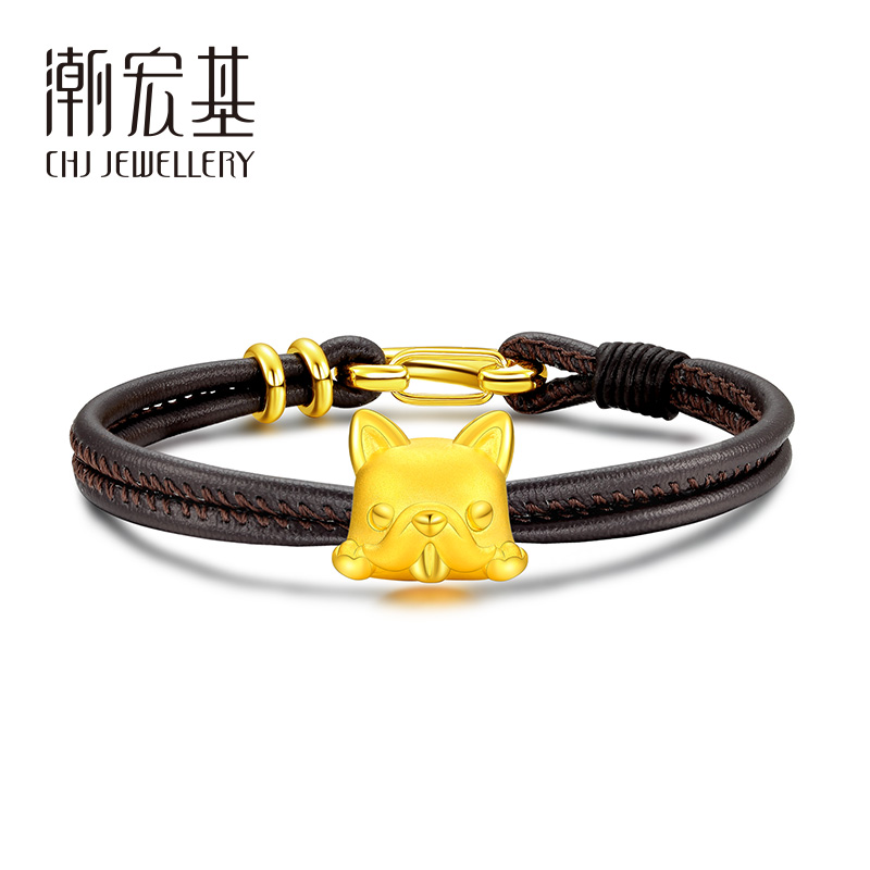 Chao Acer French Fighting Dog Chaoji Zodiac Dog Gold Bracelet Beaded 3D Hard Gold Foot Gold