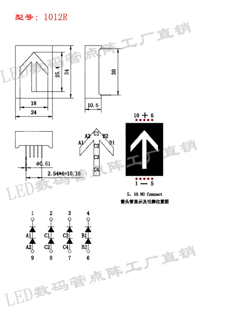 1 0-inch red light arrowhead glow pipe 24 * 34mm arrows 1012R