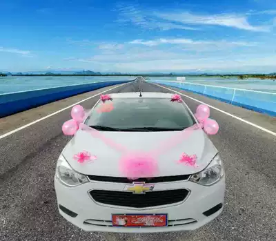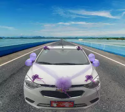 Vice wedding limousine decoration set supplies Korean flower team Yarn ball bow Pull flower balloon car Happy high-speed wedding