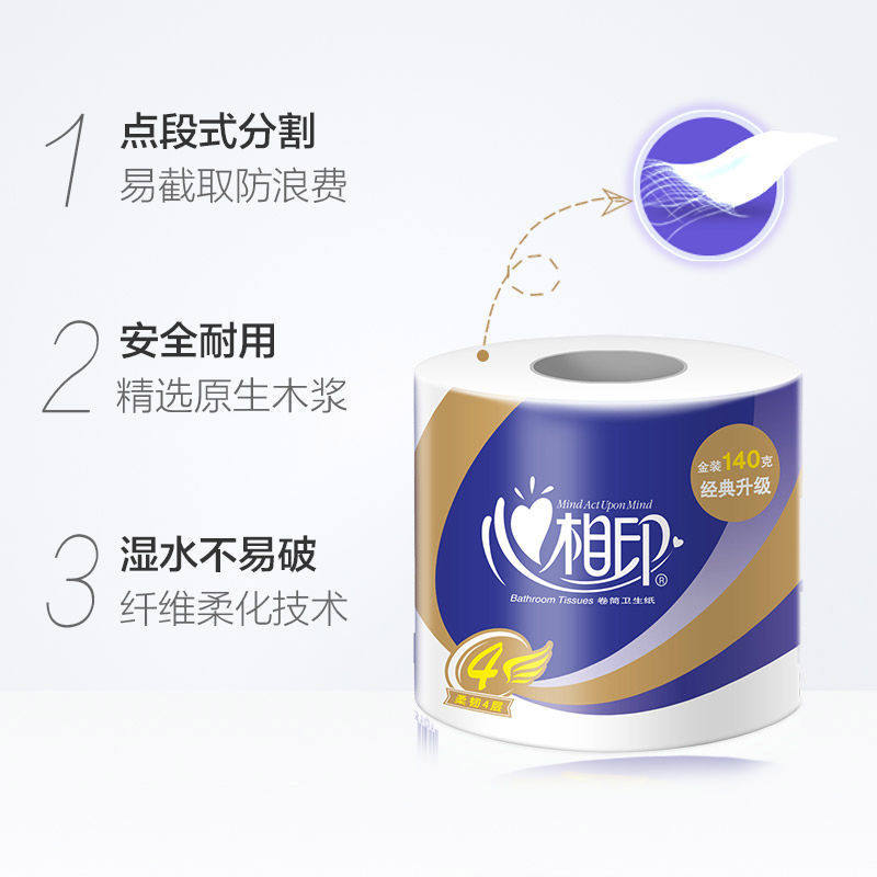 Heart phase printing roll toilet paper Household 27 roll paper 4-layer heart phase printing toilet paper toilet paper wholesale family packed whole box
