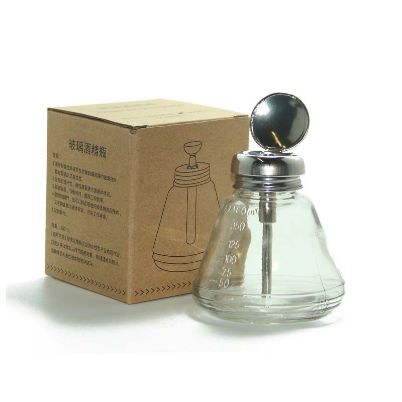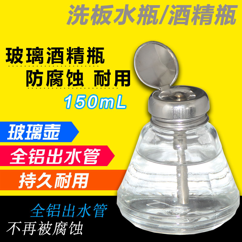 Recommended Metal Pure Aluminum Head Press Type Transparent Glass Alcohol Bottle Electronic Repair Press Outlet Jug Washboard Water Bottle