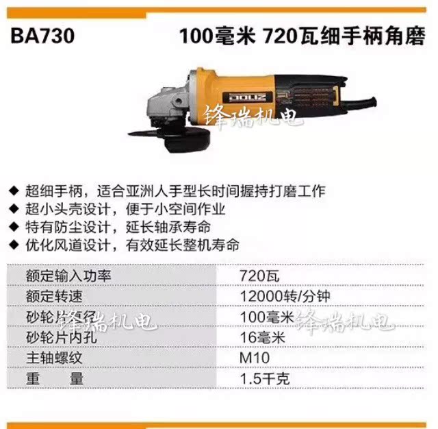 Doris BA730 angle grinder 100 type rear switch fine handle angle grinder 720W