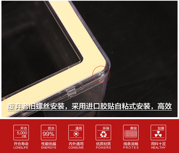 Double 86 self-adhesive waterproof box Protective cover Bathroom 2-position socket with body adhesive splash box Double 86 waterproof box