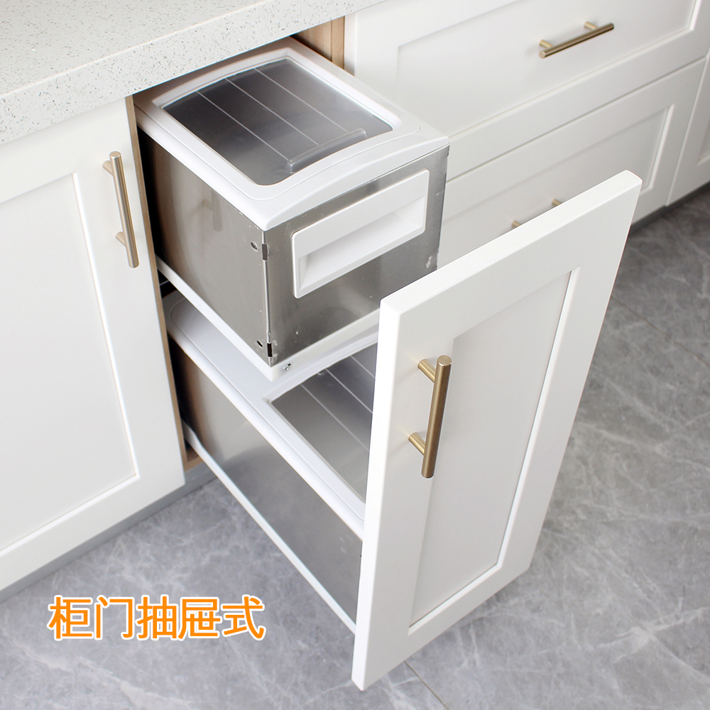 Embedded open door drawer rice box storage rice bucket Stainless steel kitchen overall cabinet Flour box with door damping double layer