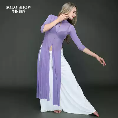 Gorgeous solo show spring and summer new belly dance suit dance practice suit national style cheongsam ice silk wide leg pants dance suit