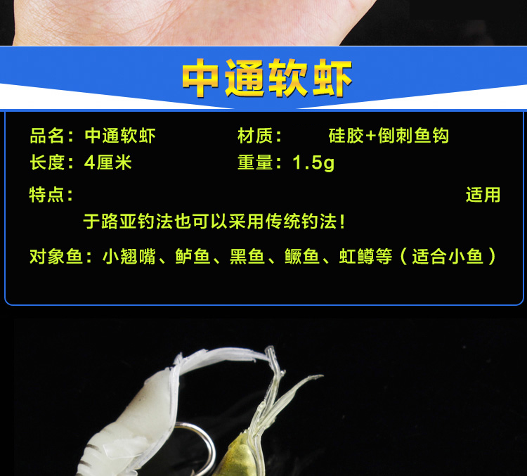 Night-light fake shrimp bait freshwater fishing night fishing with hook and hook to peg bait bait sub-soft bait