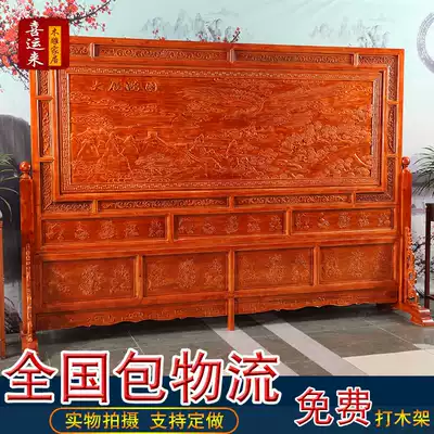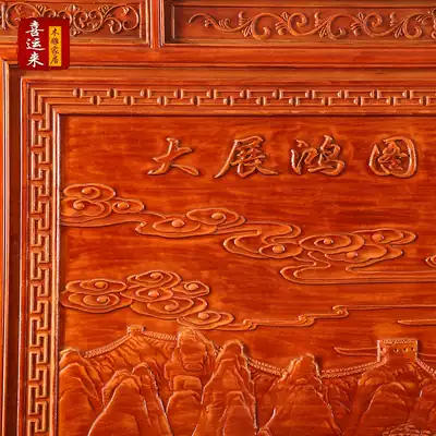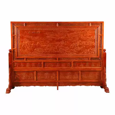 Dongyang wood carving camphor wood solid wood screen large exhibition Hongtu double-sided carving seat screen office living room porch partition