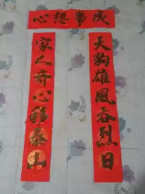 Handwritten creative Spring Couplets for the Year of the Dog Wuyun Mountain People wrote calligraphy Million years of red rice paper couplets