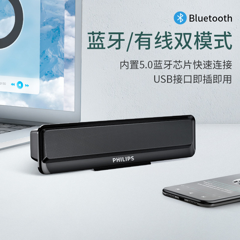 Philips Philips SPA2100 notebook computer audio desktop Bluetooth small speaker desktop home Portable Mini Subwoofer wired USB powered strip active horn 3D ring