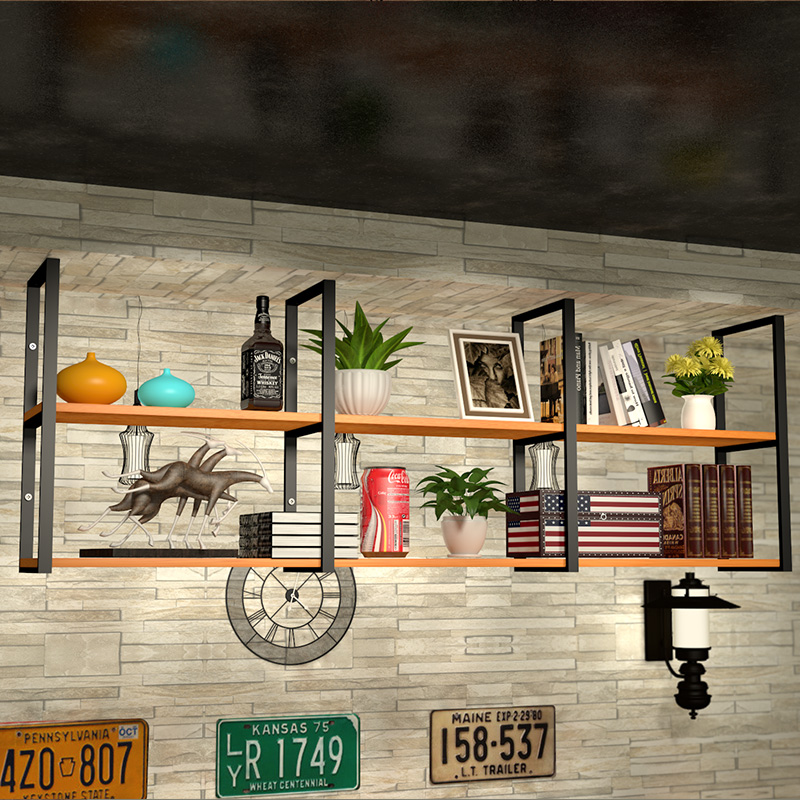 Hanging shelves on iron wall on the wall of the retro industrial wind hanging wall of the wine cabinet solid wood shelves