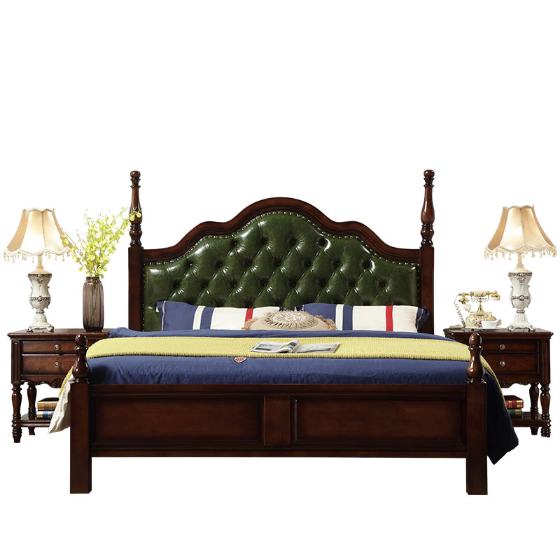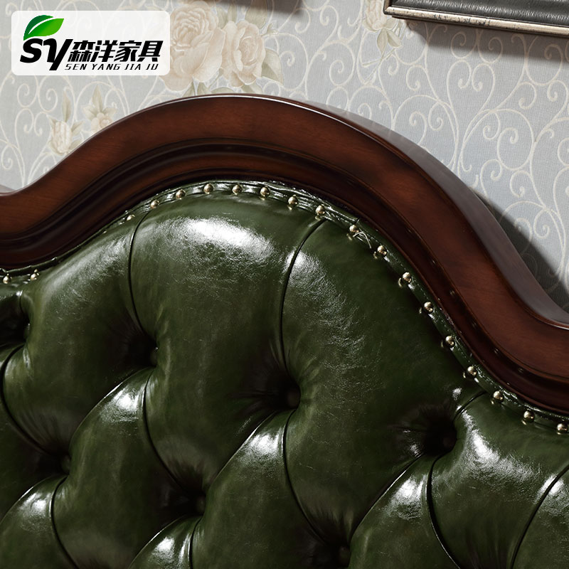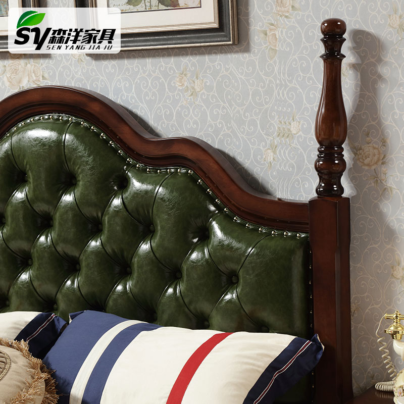 1 5 meters American country bedside sold separately green leather soft back bag double storage parents elderly parents solid wood bed