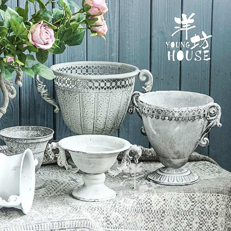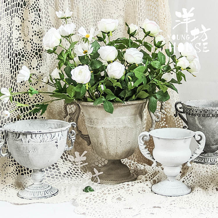 Yangfang iron sheet made old white European flower shop flower arrangement wedding table retro ins French Roman vase