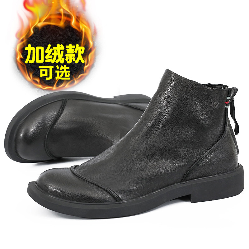 Martin boots men's leather short boots British style trendy Chelsea boots winter cowhide trendy boots men's high-top leather shoes