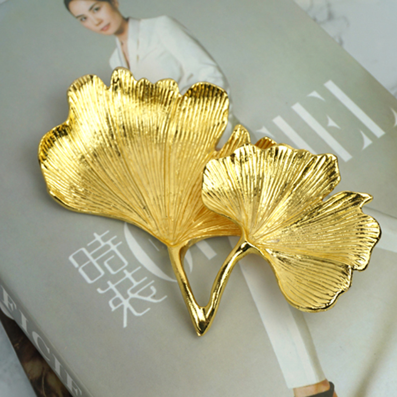 Nordic Ins Wind Metal Gingko Jewellery Dish-like plate Room Decorative Creative Jewelry Containing the Soft Fashion Hem