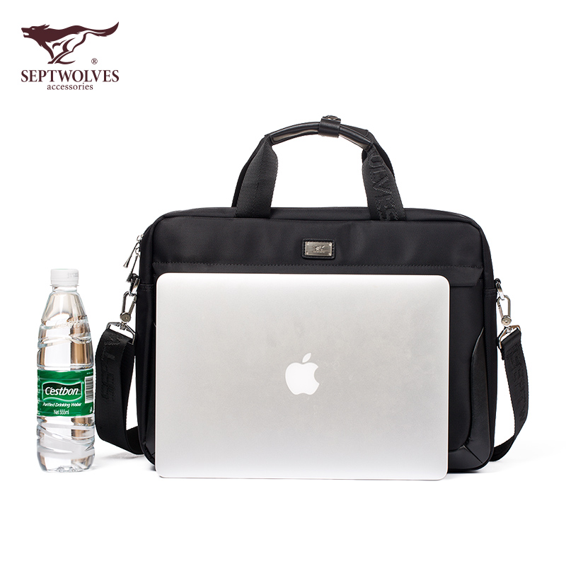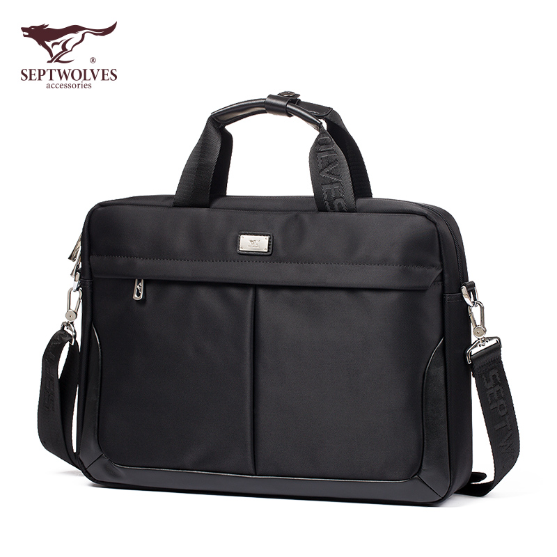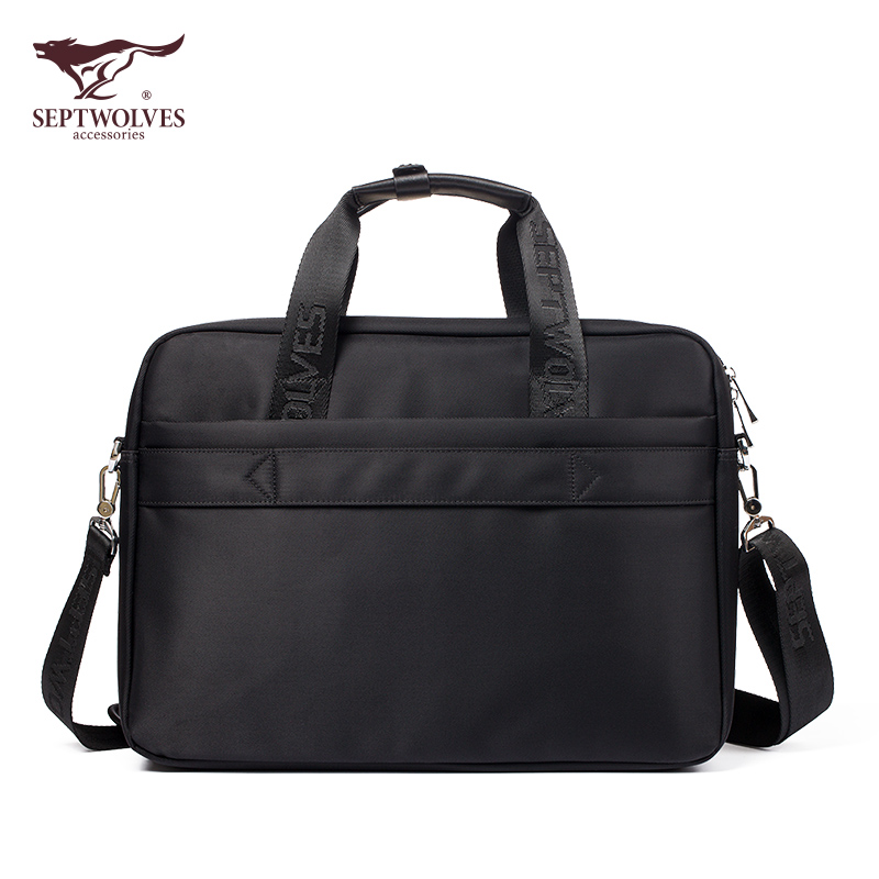 Seven Wolves Men Business Handbag Single Shoulder Inclined Cross Briefcase Multifunction Computer Bag Waterproof Oxford Cloth Bag