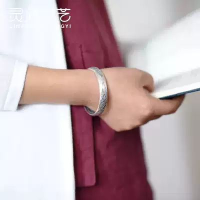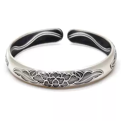 999 sterling silver bracelet retro matte wide-faced rich peony opening solid simple women's gift silver bracelet