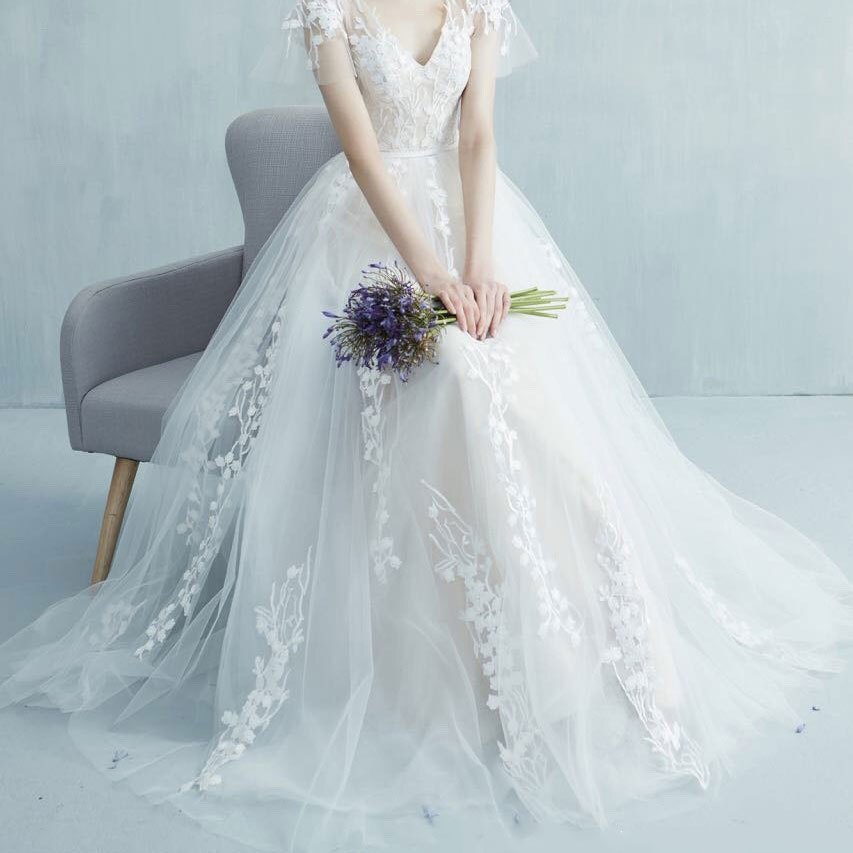 European and American forest wedding dress 2021 new Korean princess dream bride wedding V-neck simple Qi light wedding dress