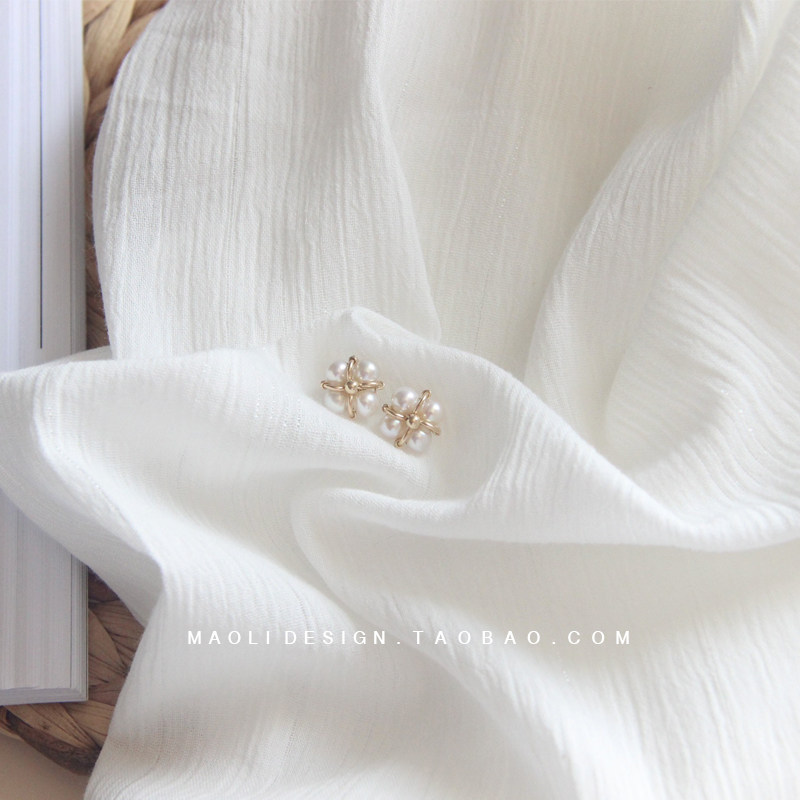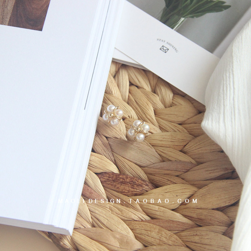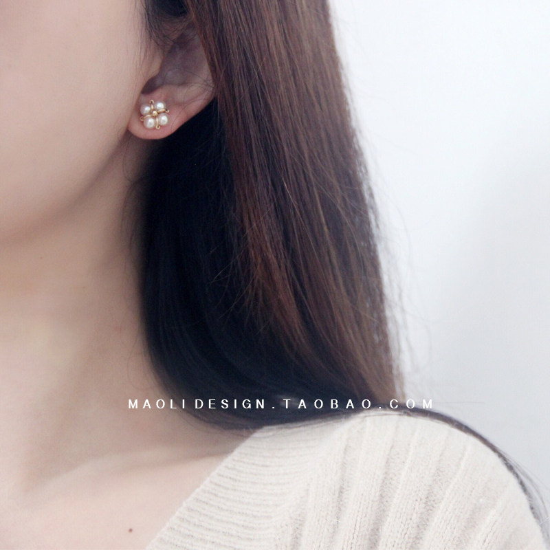 MAOLI Exclusive Original Handwoven Natural Freshwater Pearl Clover Stud Earrings Simple Female