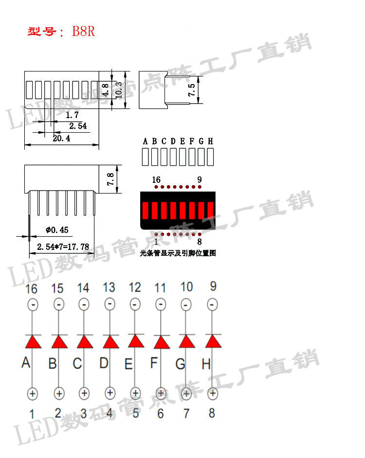 Light Strips Glow Tubes 8 Sections Octag Red Light Indication Strips 20 5 * 10mm Light strips B8R