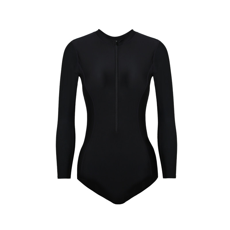 Thai black one-piece retro swimsuit women's small chest gathered to cover belly slim long sleeve sunscreen hot spring zipper swimsuit