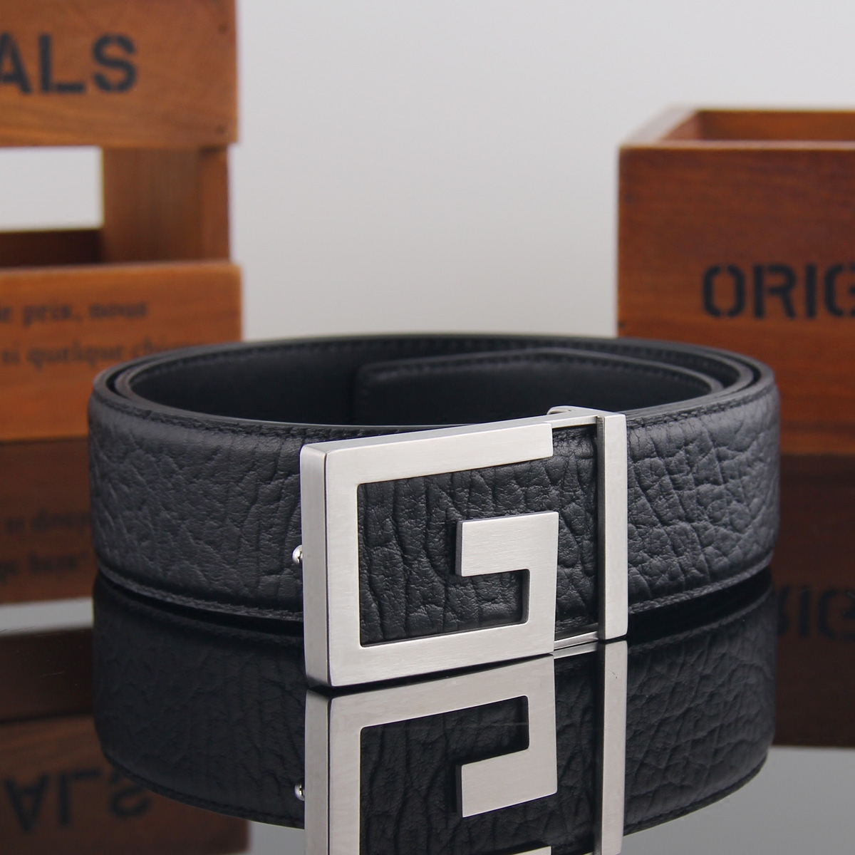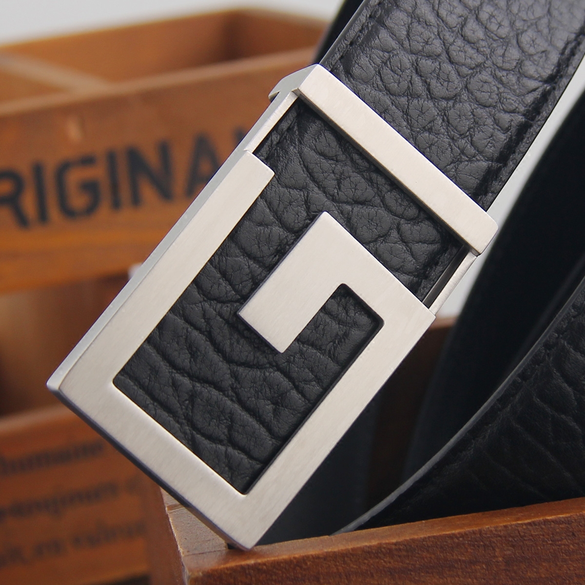 Ai Lanbao Business Elephant Grain First Layer Leather Men's Belt Stainless Steel G-shaped Smooth Buckle Leather Belt Youth