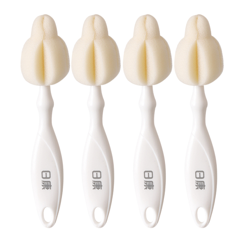 Rikang nipple brush Dual-purpose sponge nipple brush Bottle brush Nipple brush Nipple brush Wide mouth standard mouth common 4 pcs