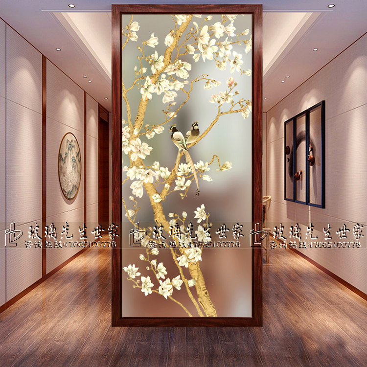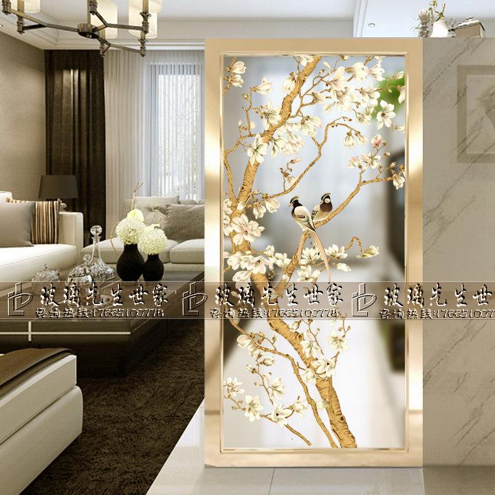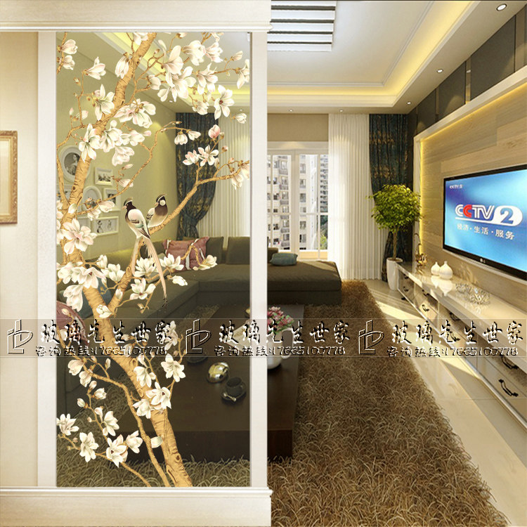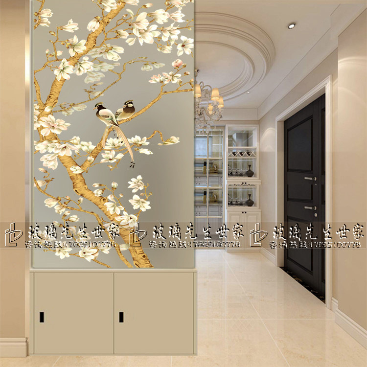 Custom Craft Art Glass Eurostyle Living Room Genguan Background Wall Shoe Cabinet On Screen Partition Xi Magpie Orchid