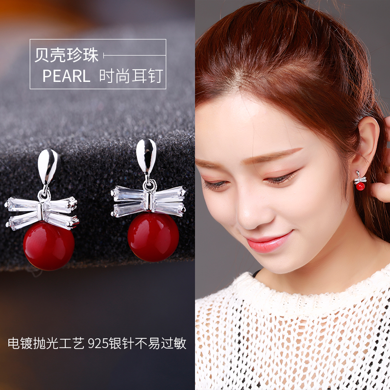 Korean pearl earrings 925 sterling silver earrings female fashion temperament personality wild sexy dragonfly hypoallergenic earrings