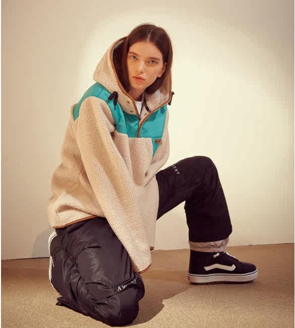 HOLIFE Korea ski sweatshirt grabbing suede hoodie hip-hop hairy ring with cap men and women single double board black pink