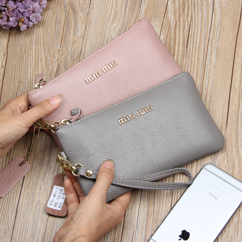 First layer cowhide ladies handbag 2018 new soft leather all-match clutch bag simple leather large-capacity clutch bag tide