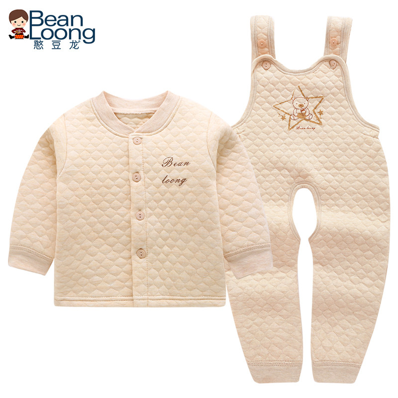 Bean dragon baby quilted overalls suit autumn and winter models thickened thermal underwear open file color cotton going out winter clothes
